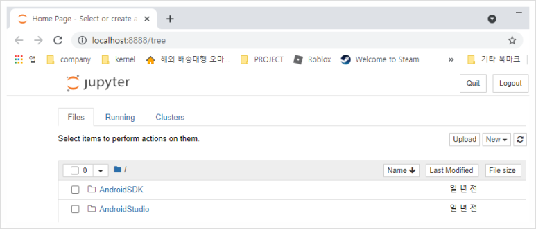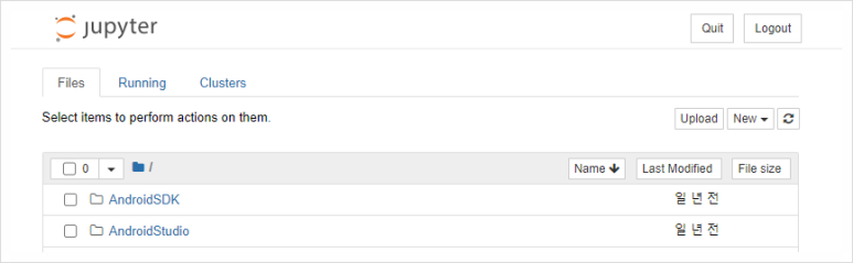 처음 실행된 화면에서 오른쪽 중간의 Upload 버튼을 통해서 파일도 업로드 할 수 있다.