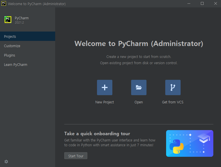 2. 설치시 바탕화면에 바로가기를 설정하거나 윈도우 버튼을 눌러서 표시되는 Pycharm community Edition을 선택한다.