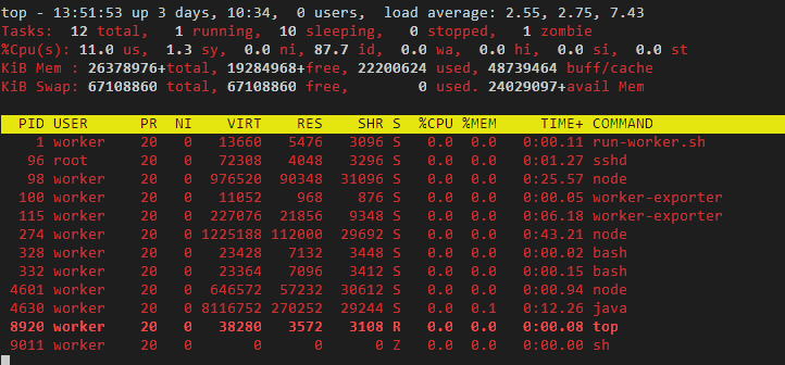 top 이후에 z 입력 - 실행중인 프로세스의 색깔을 변경해서 보여줌