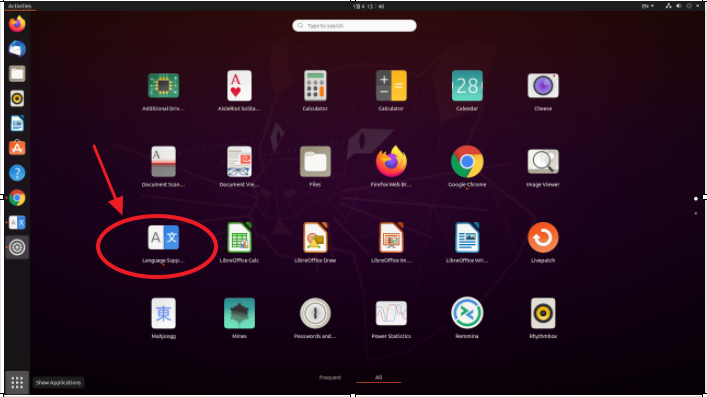 1. Show Applications (Super (Window key) + A ) 후 Language support