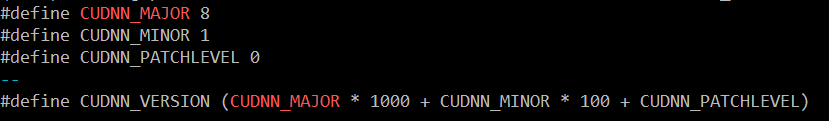 cudnn : cat /usr/local/cuda/include/cudnn_version.h | grep CUDNN_MAJOR -A 2