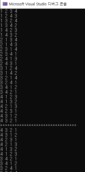 <사용예 1 - 4자리 숫자의 순열 표시>